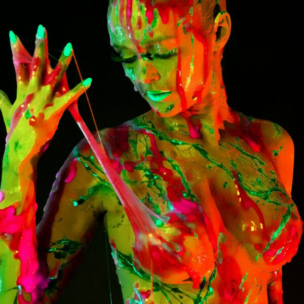 Manchmal darf es auch etwas gewagter und experimenteller sein (das gilt in diesem Fall auch für manch‘ digitale Foto-Farbveränderungen). Hinzu kam teilweise auch der Einsatz von Neonfarbe und UV-Licht. Fotograf Alex und ich kreierten mit angerührtem Schleim einmal eine andere Art und Weise, Fotomodelle in Szene zu setzen. Das war eine ziemliche Sauerei, hat aber viel Spaß gemacht… :o)