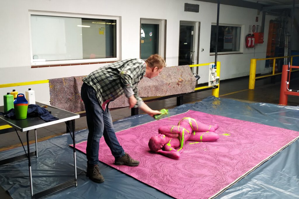Über mehrere Monate hinweg und in mehreren Etappen entstanden so bewusst abseits von den vermeintlich üblichen Fotomodell-Typen Kunstwerke der besonderen ART. Teppiche des unternehmerischen Kooperationspartners DAS TEPPICHWERK (vormals VORWERK.Flooring) sowie die Fotoshooting-Serie SPLASH.ART dienten als Grundlage der Herangehensweise. Nach jeweils mehrstündigen Vorarbeiten im Künstleratelier wurden die finalen Performances in den Produktionshallen der Hamelner Teppichwerke realisiert.