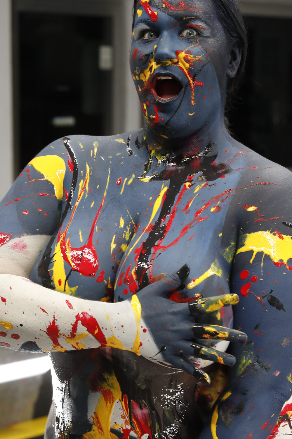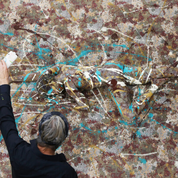 Somit entstand eine beeindruckende Serie einerseits unterschiedlicher, aber durch die verschiedenen Menschentypen sowie der vergleichbaren Mach-ART eben doch miteinander verbundene Kunstwerke. Und das gleich in doppelter Weise: Zum einen gibt es die digitalen Fotoserien und darüber hinaus die realen, von den Aktionen verbliebenen Bodenbeläge.